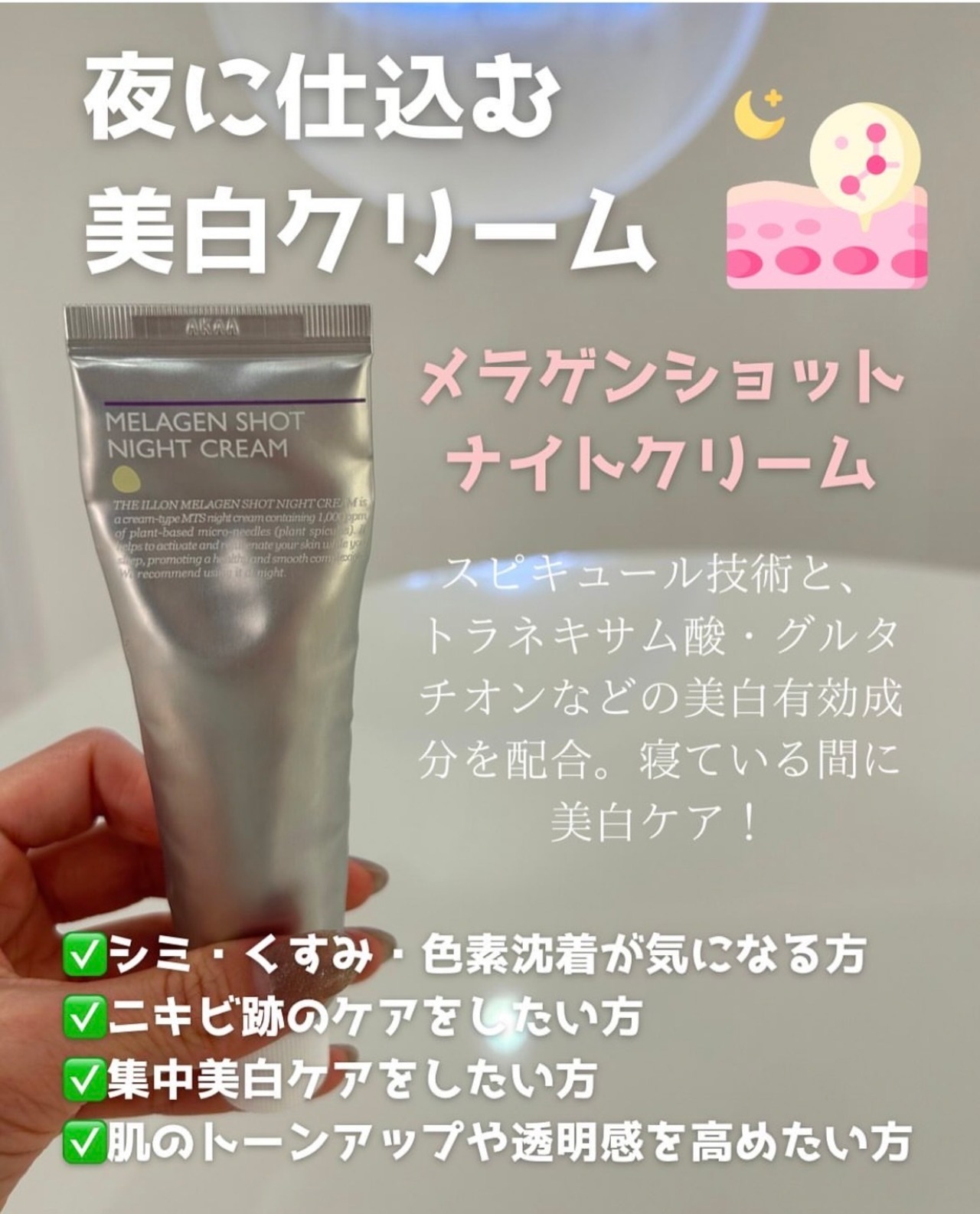 【iLLON 】MELAGEN SHOT NIGHT CREAM(イロン メラゲン ショット ナイトクリーム) 70ml